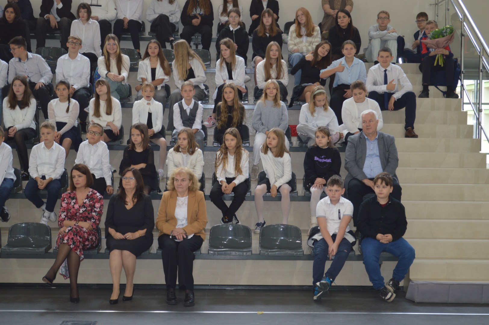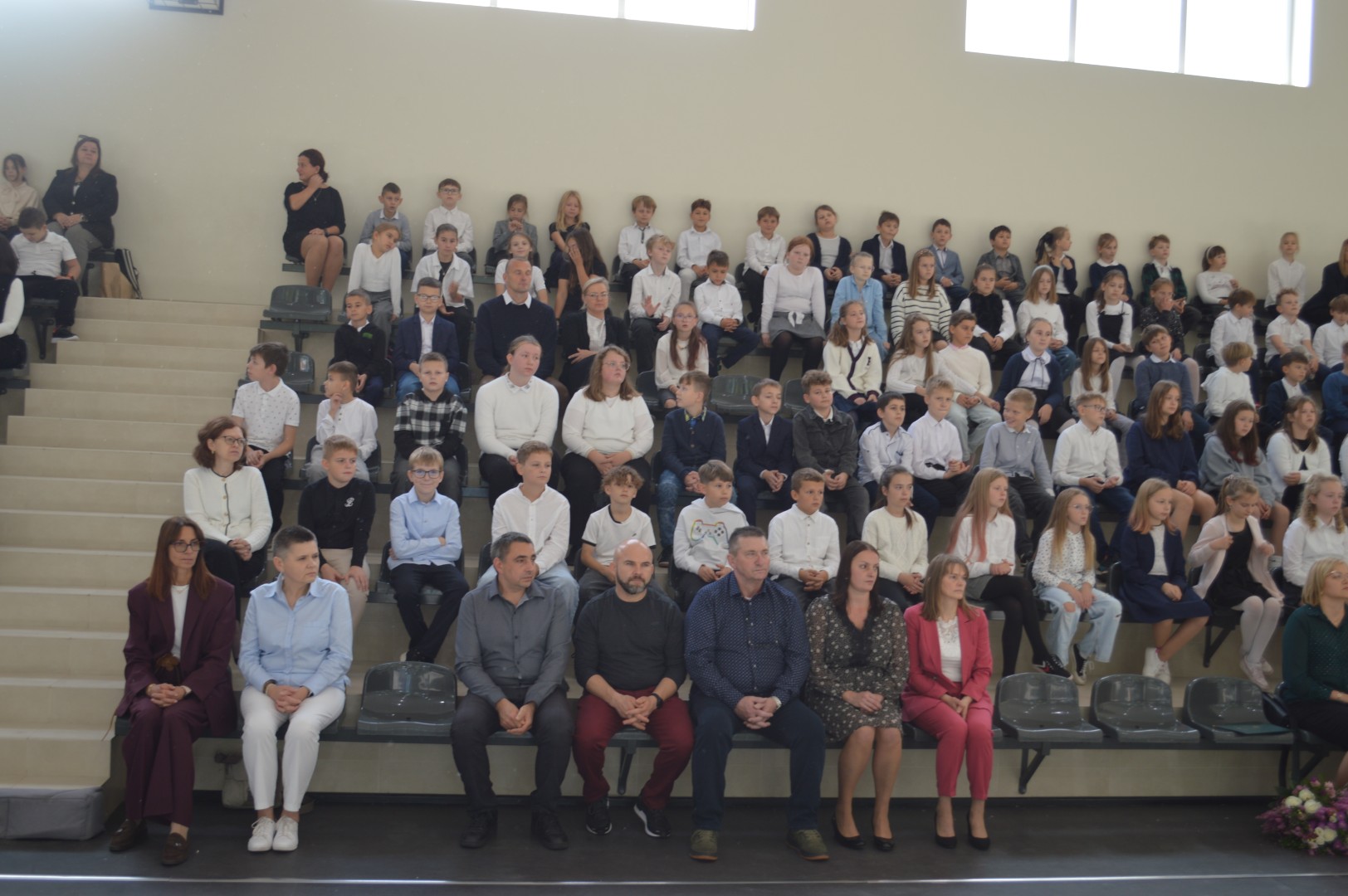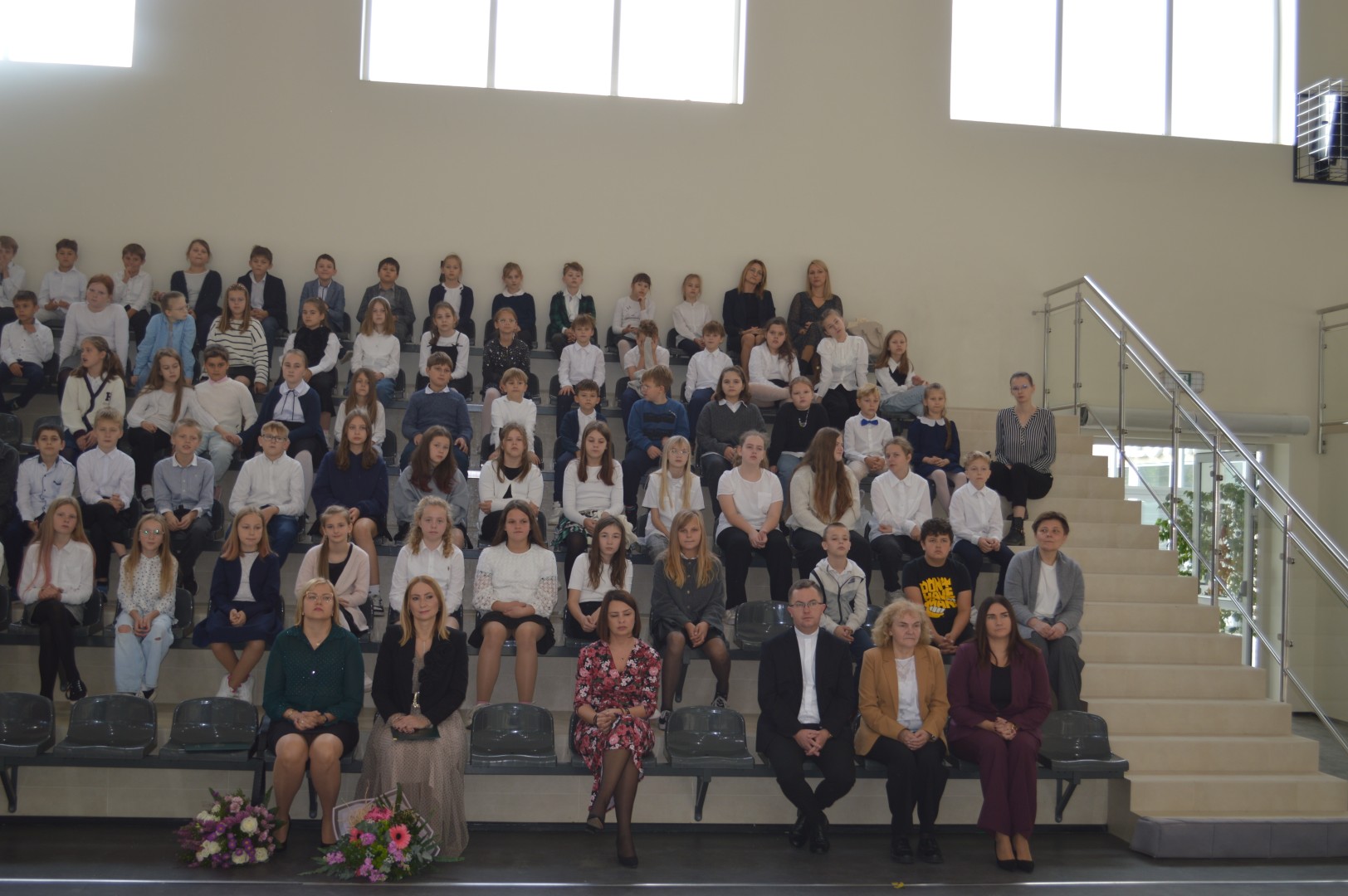 Na tę uroczystość przybyli zaproszeni goście: Pani Malwina Deska – kierownik Centrum Usług Wspólnych w Gminie Zblewo, przedstawicielka Rady Rodziców Pani Daniela Chłusewicz oraz nauczyciele, pracownicy szkoły i uczniowie.