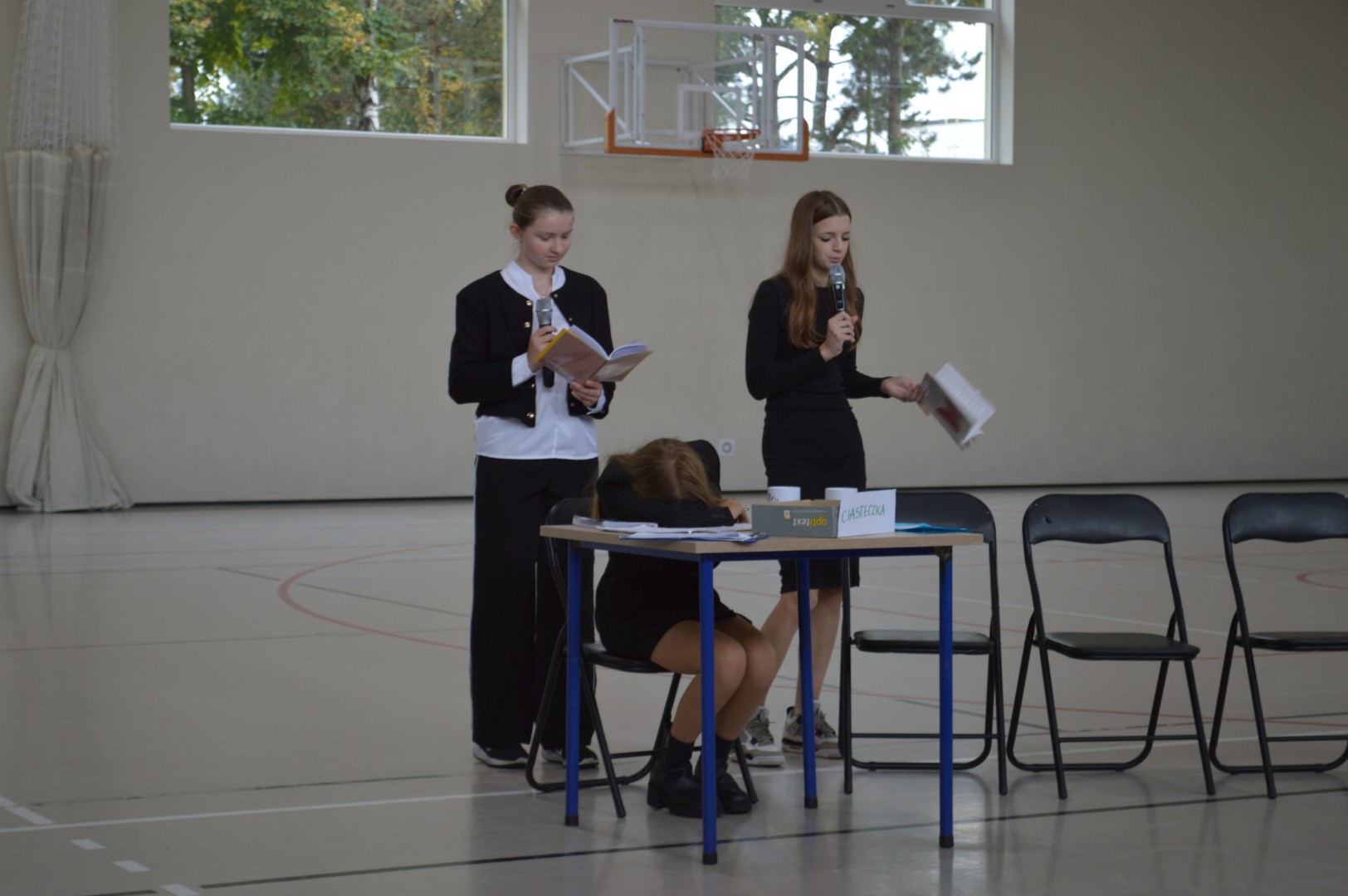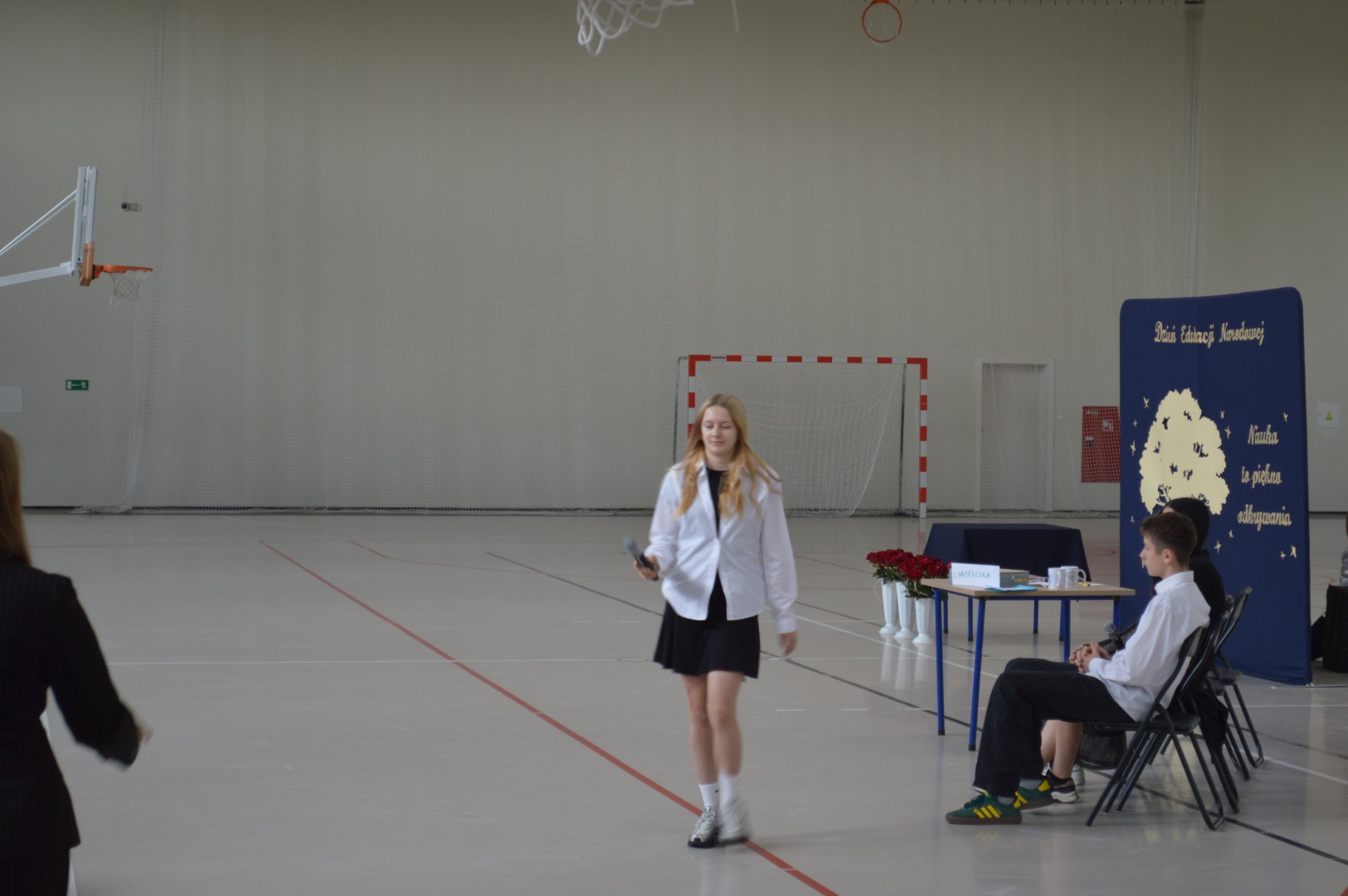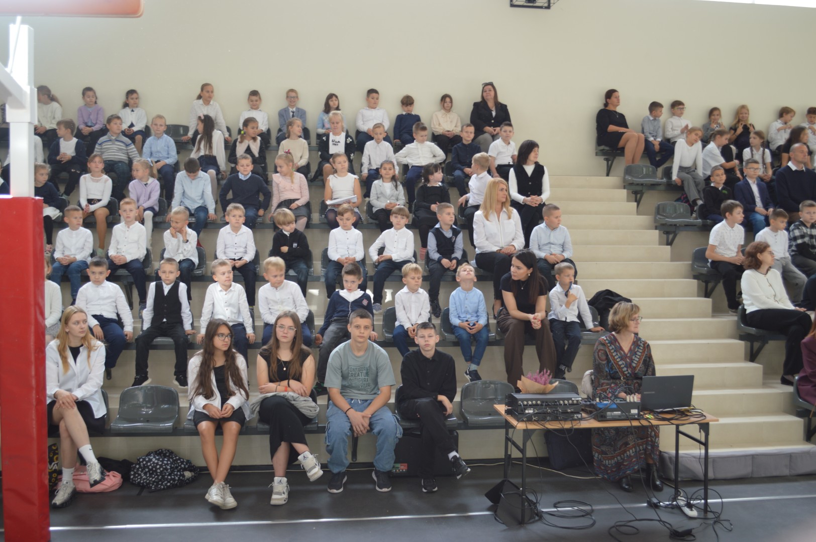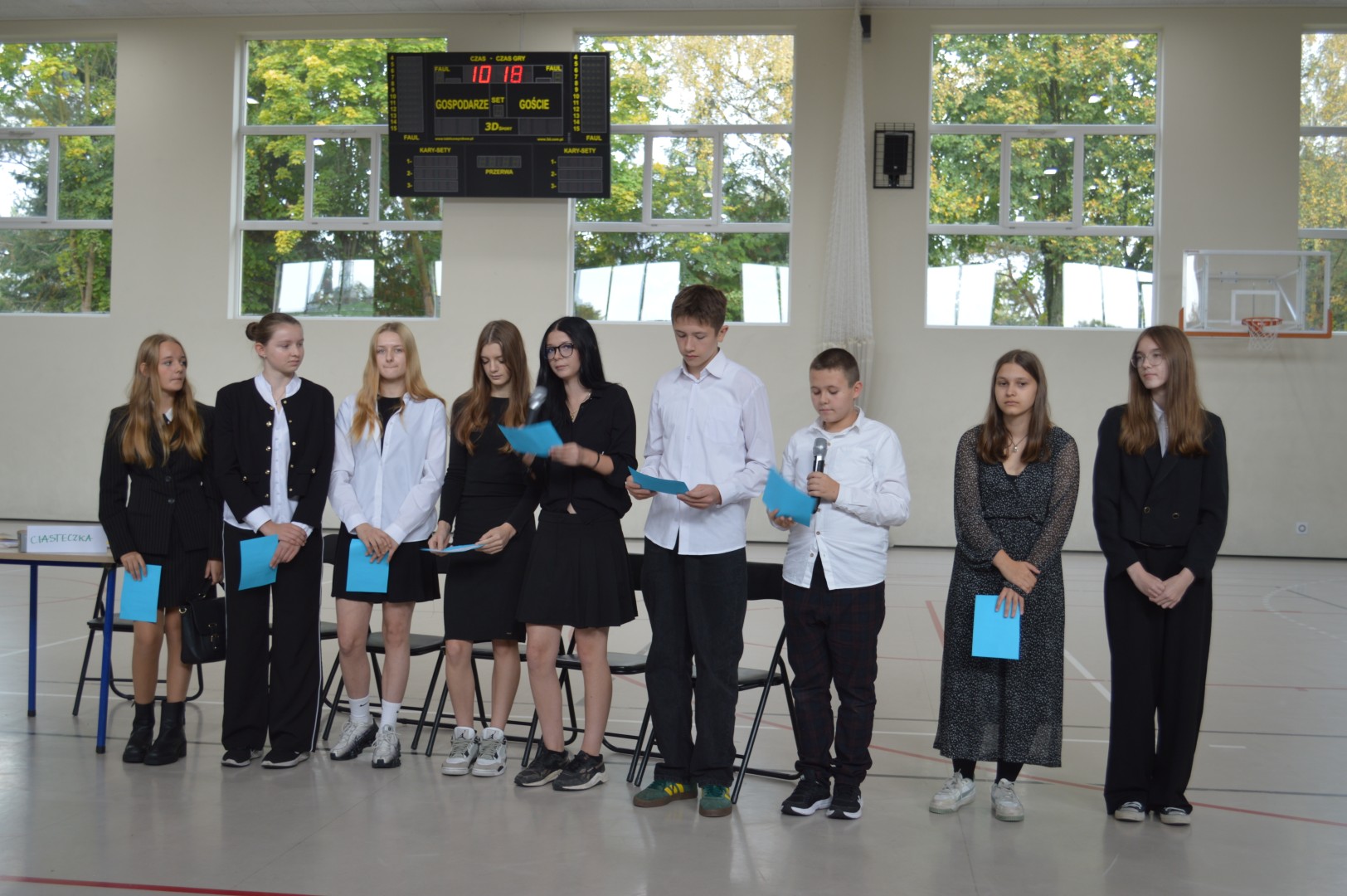 Na tę uroczystość przybyli zaproszeni goście: Pani Malwina Deska – kierownik Centrum Usług Wspólnych w Gminie Zblewo, przedstawicielka Rady Rodziców Pani Daniela Chłusewicz oraz nauczyciele, pracownicy szkoły i uczniowie.