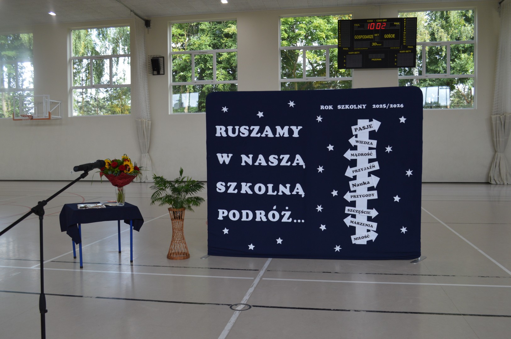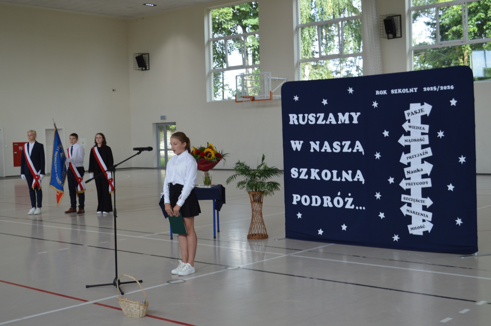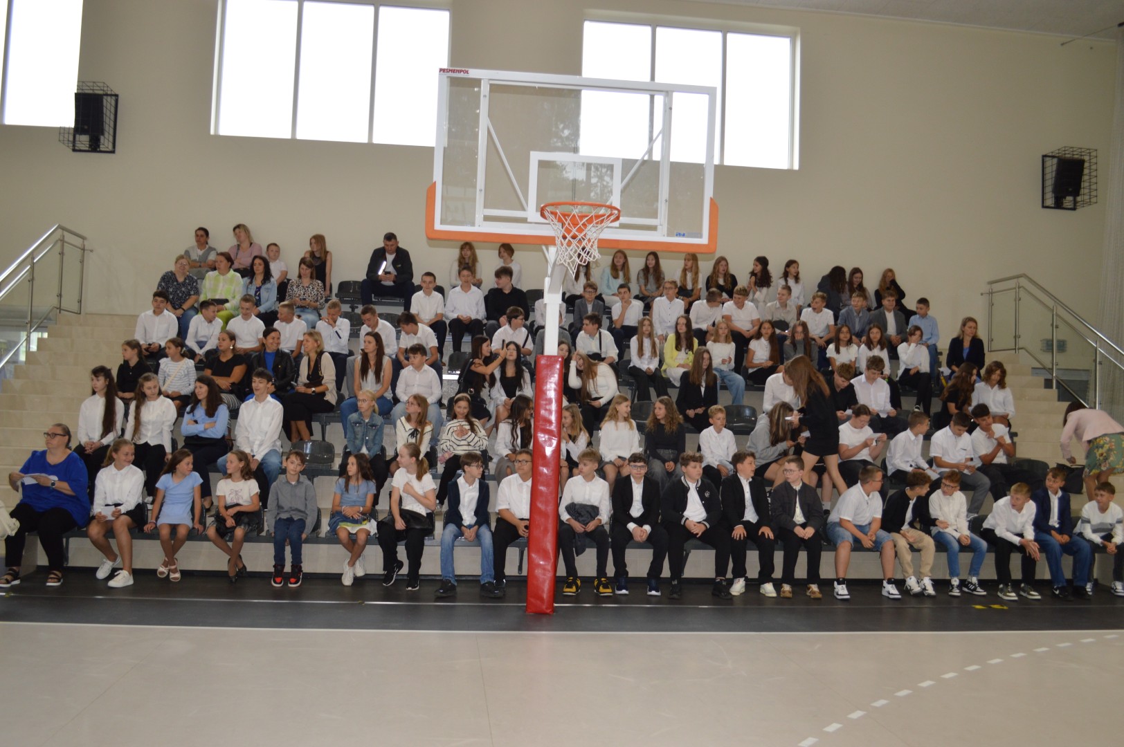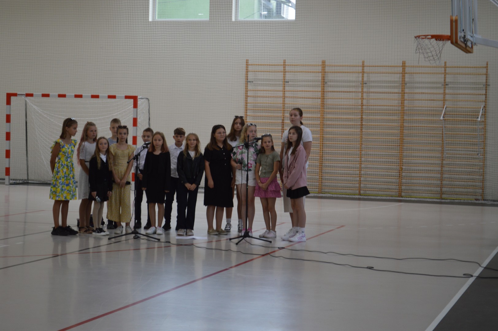 1.09.2025 r. punktualnie o godz. 8.00 na hali widowiskowo-sportowej przy Publicznej Szkole Podstawowej z Oddziałami Integracyjnymi im. Wincentego Kwaśniewskiego w Zblewie rozpoczęła się uroczysta akademia z okazji rozpoczęcia nowego roku szkolnego.