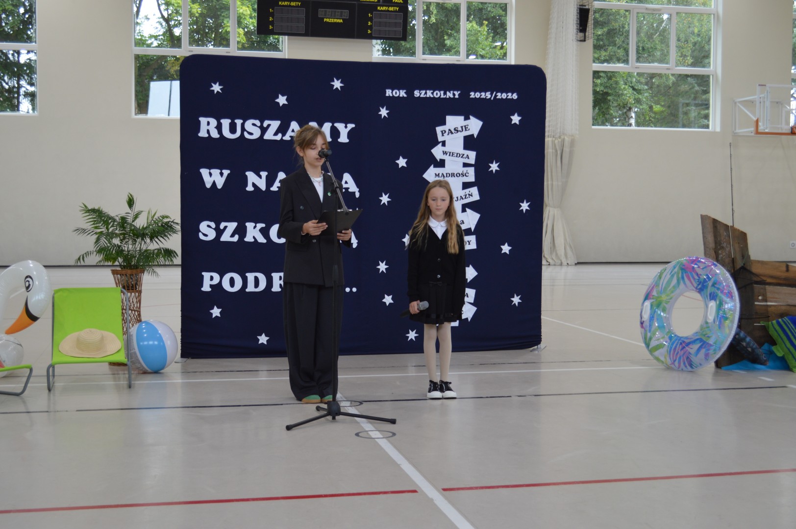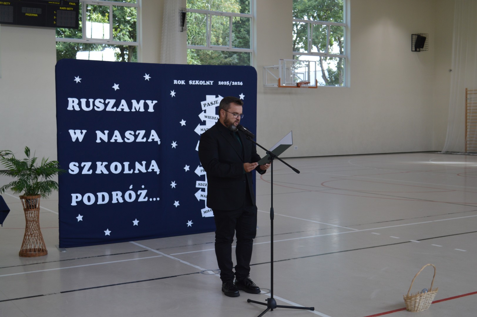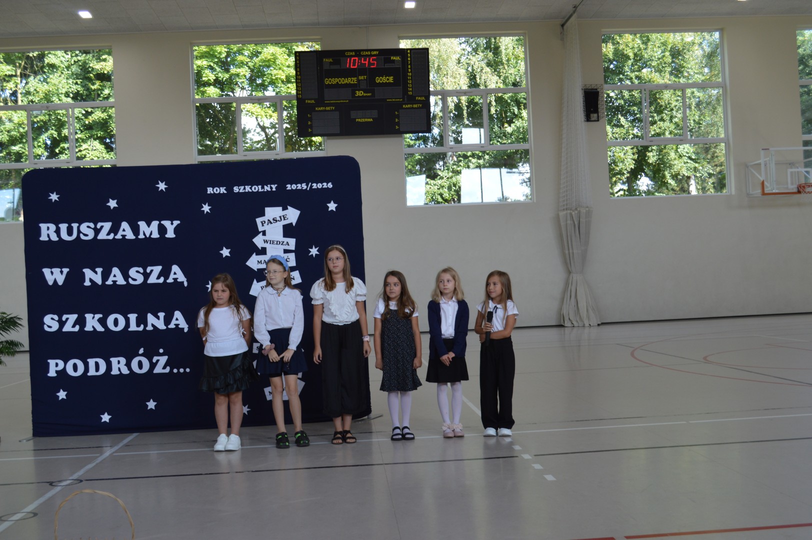 1.09.2025 r. punktualnie o godz. 8.00 na hali widowiskowo-sportowej przy Publicznej Szkole Podstawowej z Oddziałami Integracyjnymi im. Wincentego Kwaśniewskiego w Zblewie rozpoczęła się uroczysta akademia z okazji rozpoczęcia nowego roku szkolnego.