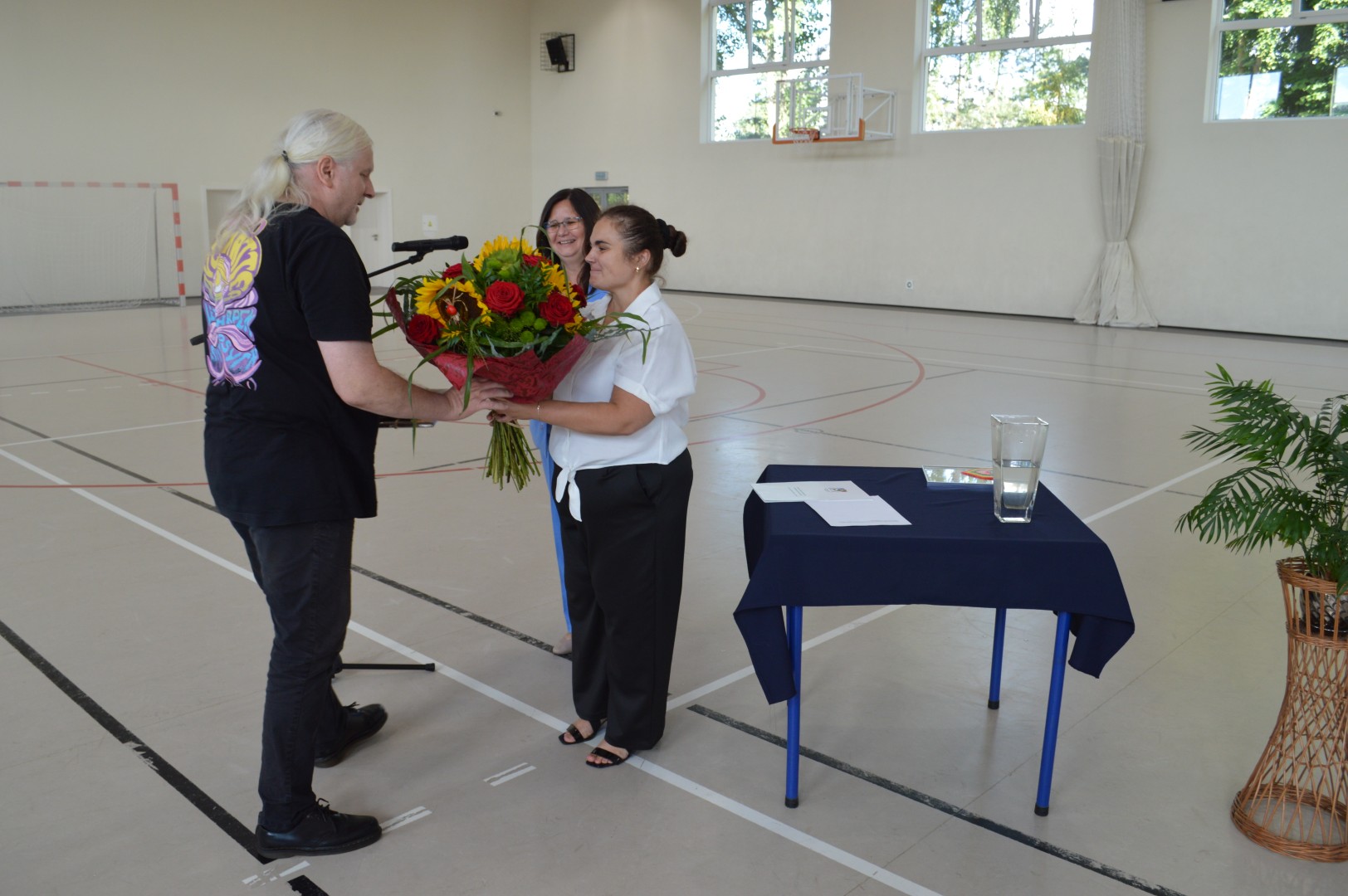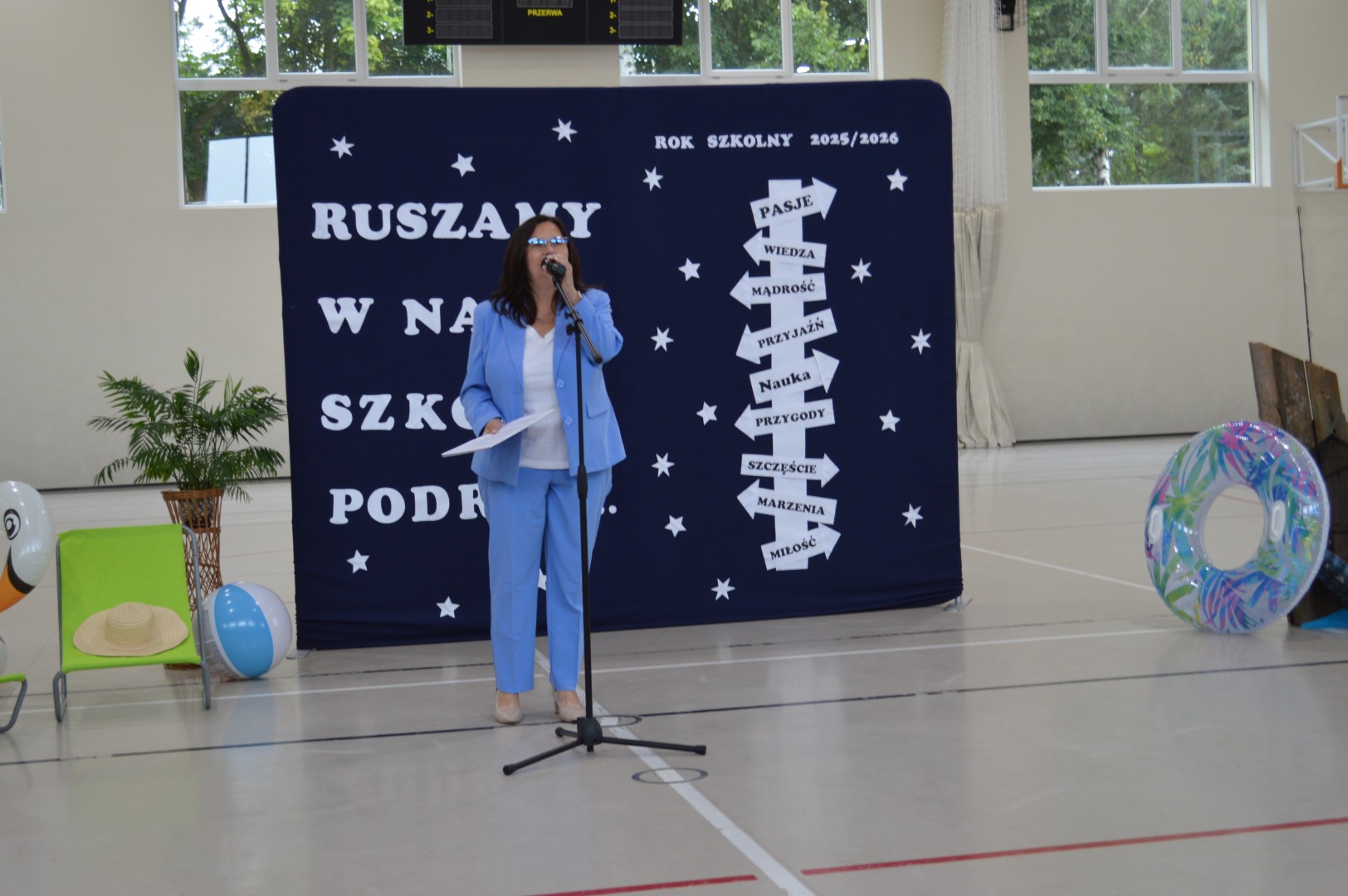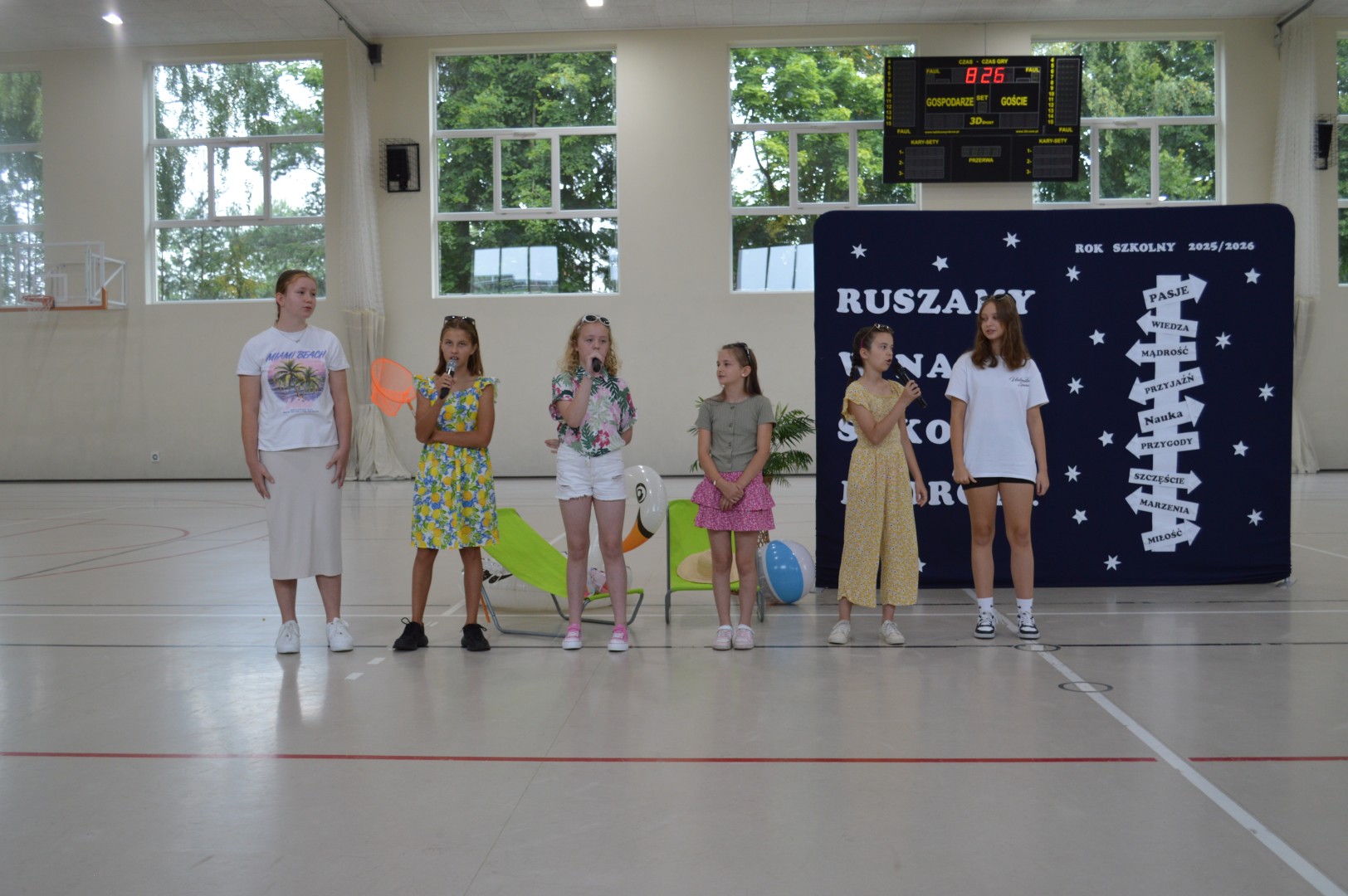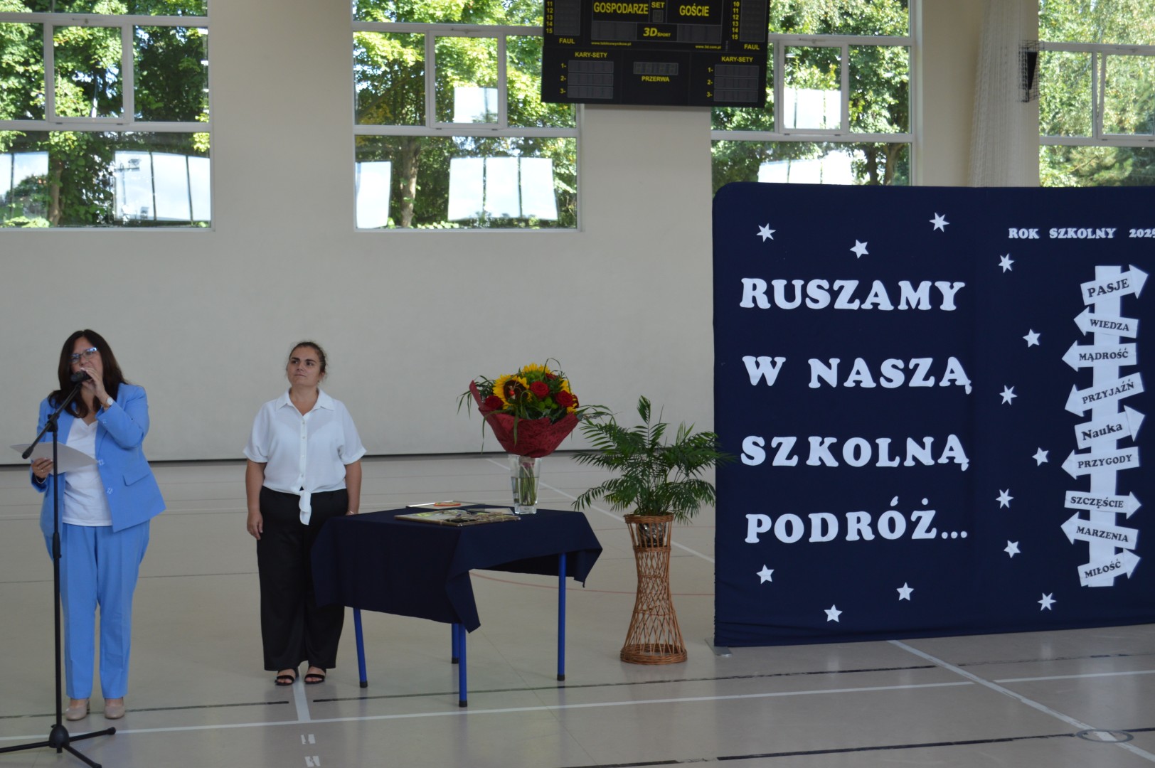 1.09.2025 r. punktualnie o godz. 8.00 na hali widowiskowo-sportowej przy Publicznej Szkole Podstawowej z Oddziałami Integracyjnymi im. Wincentego Kwaśniewskiego w Zblewie rozpoczęła się uroczysta akademia z okazji rozpoczęcia nowego roku szkolnego.